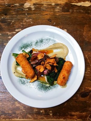 Fish and chips beer battered haddock, hand cut chips, mushy peas, tartare sauce, deep fried capers and dill salad 14 The Bath beef burger tomato and onion salsa, mature cheddar, mayo, hand cut chips, salad 12 Root veg and caramelized onion hotpot tomato gravy, herb crust v 11