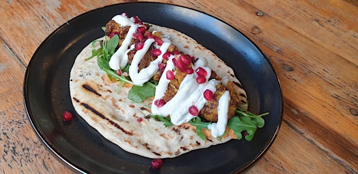Spiced Cauliflower (vg) – Hummus, rocket, pomegranate and mint yoghurt