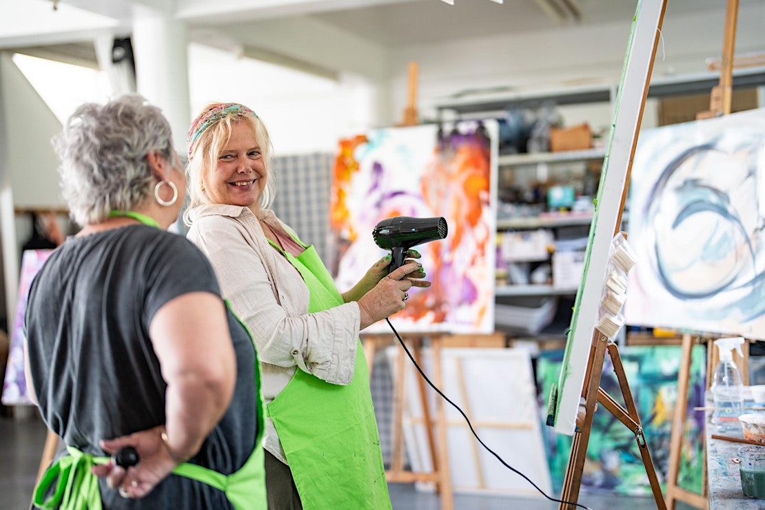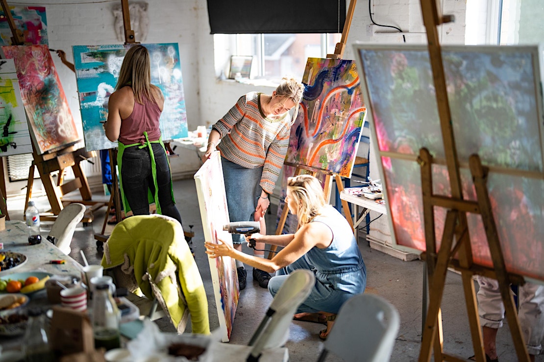 - Live group demonstration of abstract painting techniques and plenty of 1:1 guidance