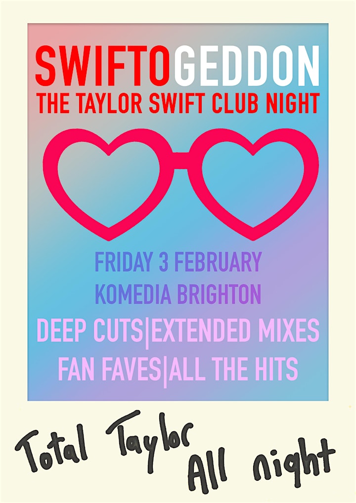 A night dedicated to worshipping at the altar of Taylor Swift: non-stop Swifty all night: deep cuts, extended mixes, fan favourites and all the hits.