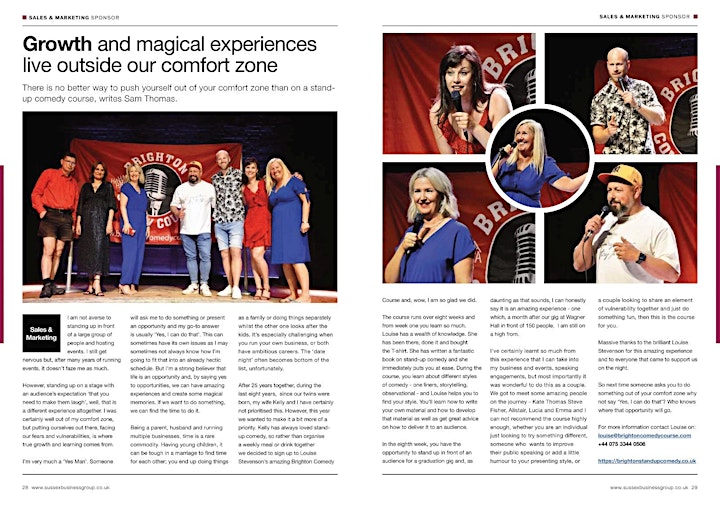 Want to come out of your comfort zone? Read the review from Sussex Business Magazine, below.