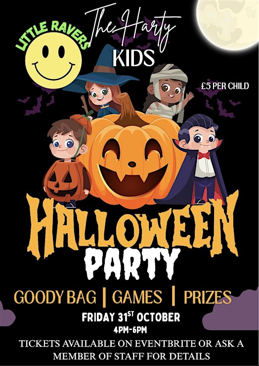 The Harty Kids Halloween Party with Little Ravers on Friday 31st October 4pm – 6pm