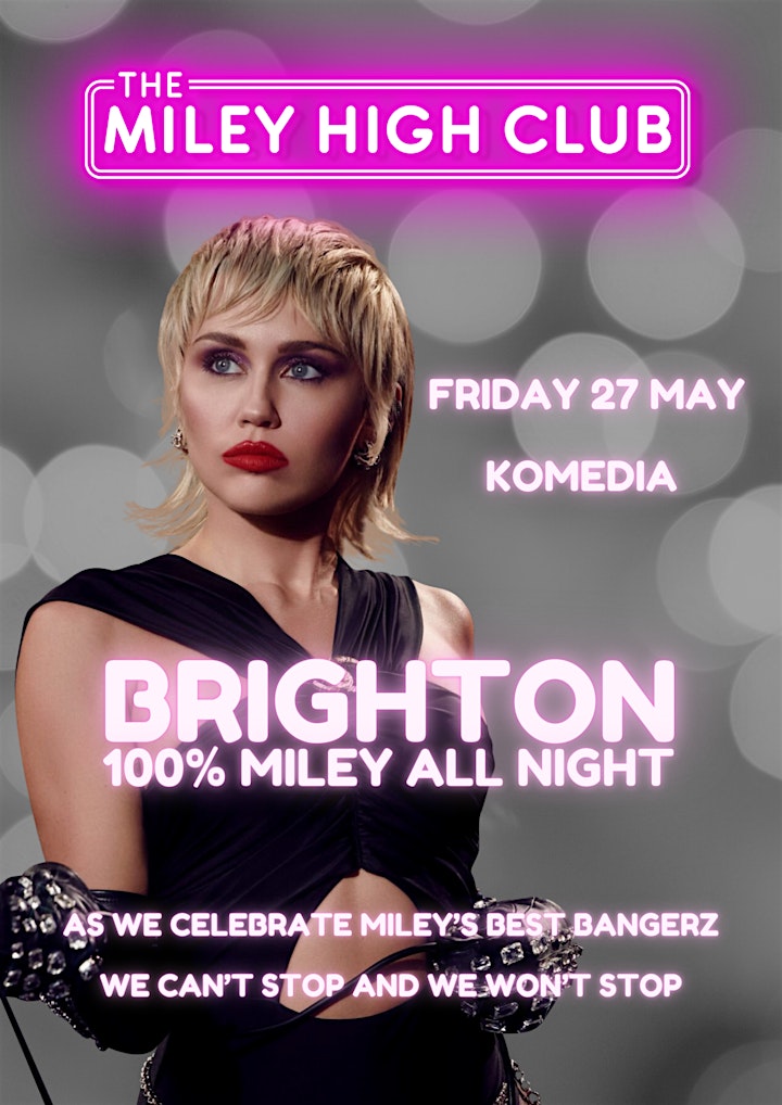 The Miley High Club – The club night for everyone to get high on Miley Cyrus and together celebrate the music she has blessed us all with. Chart-topping hits, fan favourite B-sides, covers and collaborations, this is 100% Miley. All night. Uninterrupted.