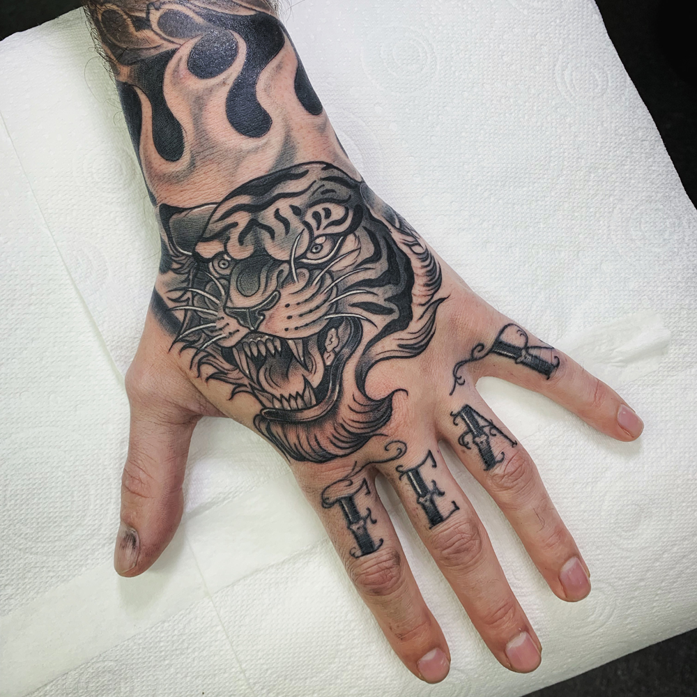 Mick: Originally I’m from East London and I’m a self taught artist, I had crossed paths with the tattoo world but for a while I had my own business selling my art, from custom painting motorcycles to canvases, if there was a surface to paint on I would paint it. I also had some terrible jobs that spurred me on to work for myself as an artist.