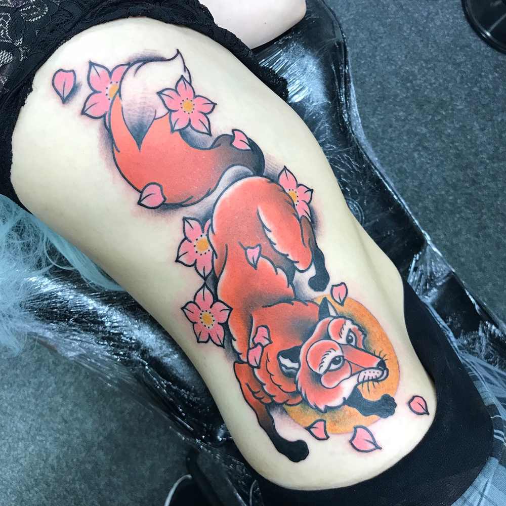 Will: I started out at the Blue Dragon so there’s a lot. I guess it would be my first tattoo, a small cherry blossom on myself, the boss man and everyone sitting around watching me and guiding me. My life majorly changed that day. Liz: Meeting all the old Blue Dragon tattooist at the 30th celebration party.
