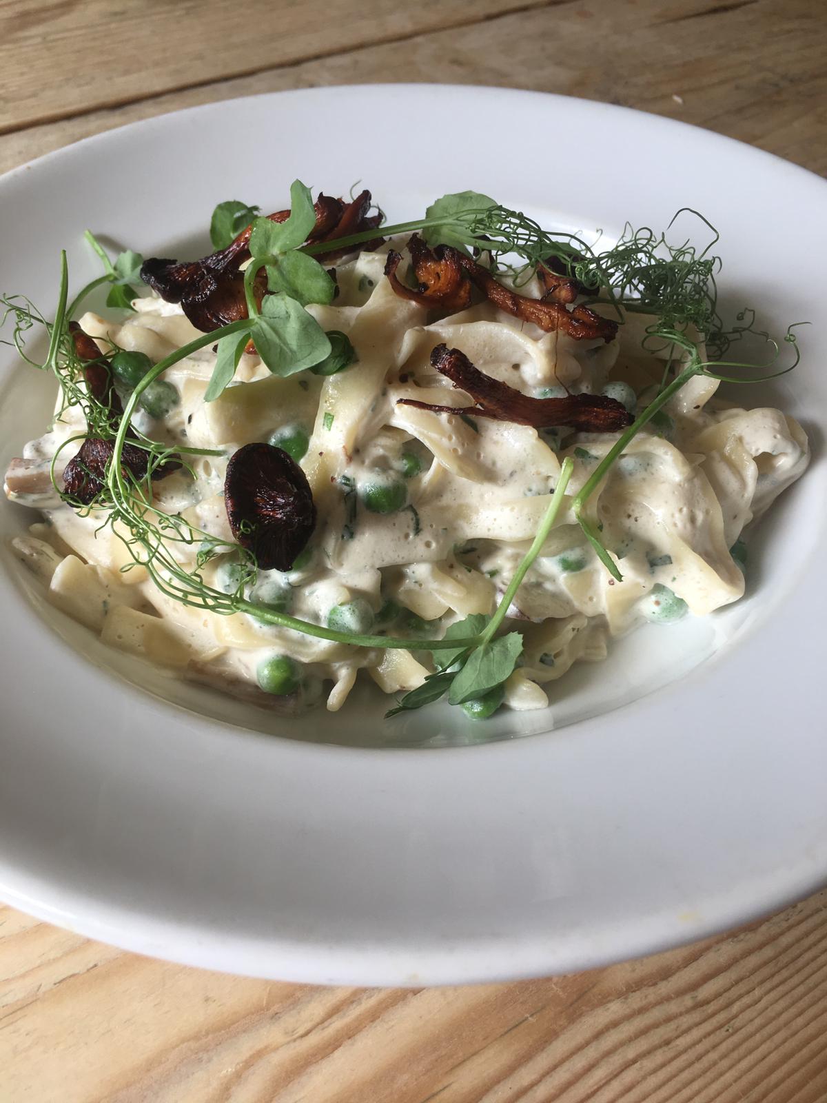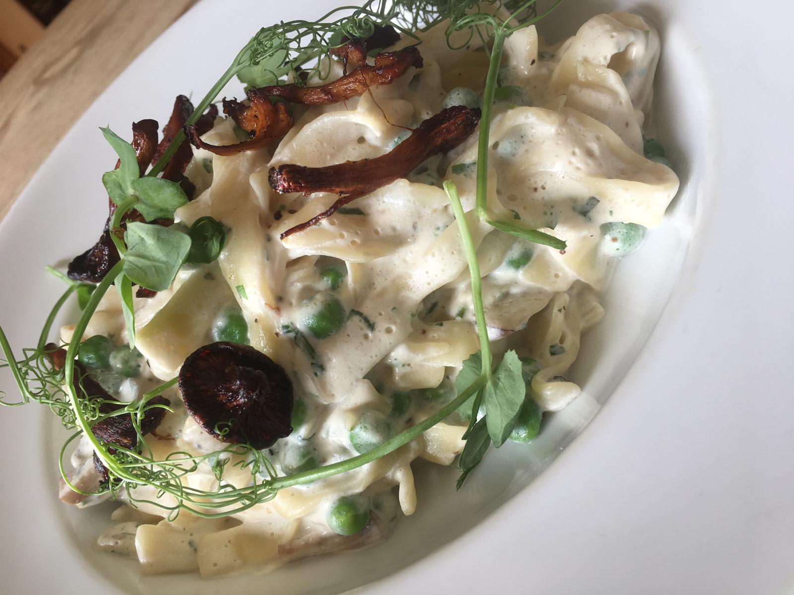 As a vegan I struggled to find a vegan version of carbonara, which is one of my favs. So I changed the cream to soya cream to offer a lovely fresh winters / autumnal dish for people to enjoy.